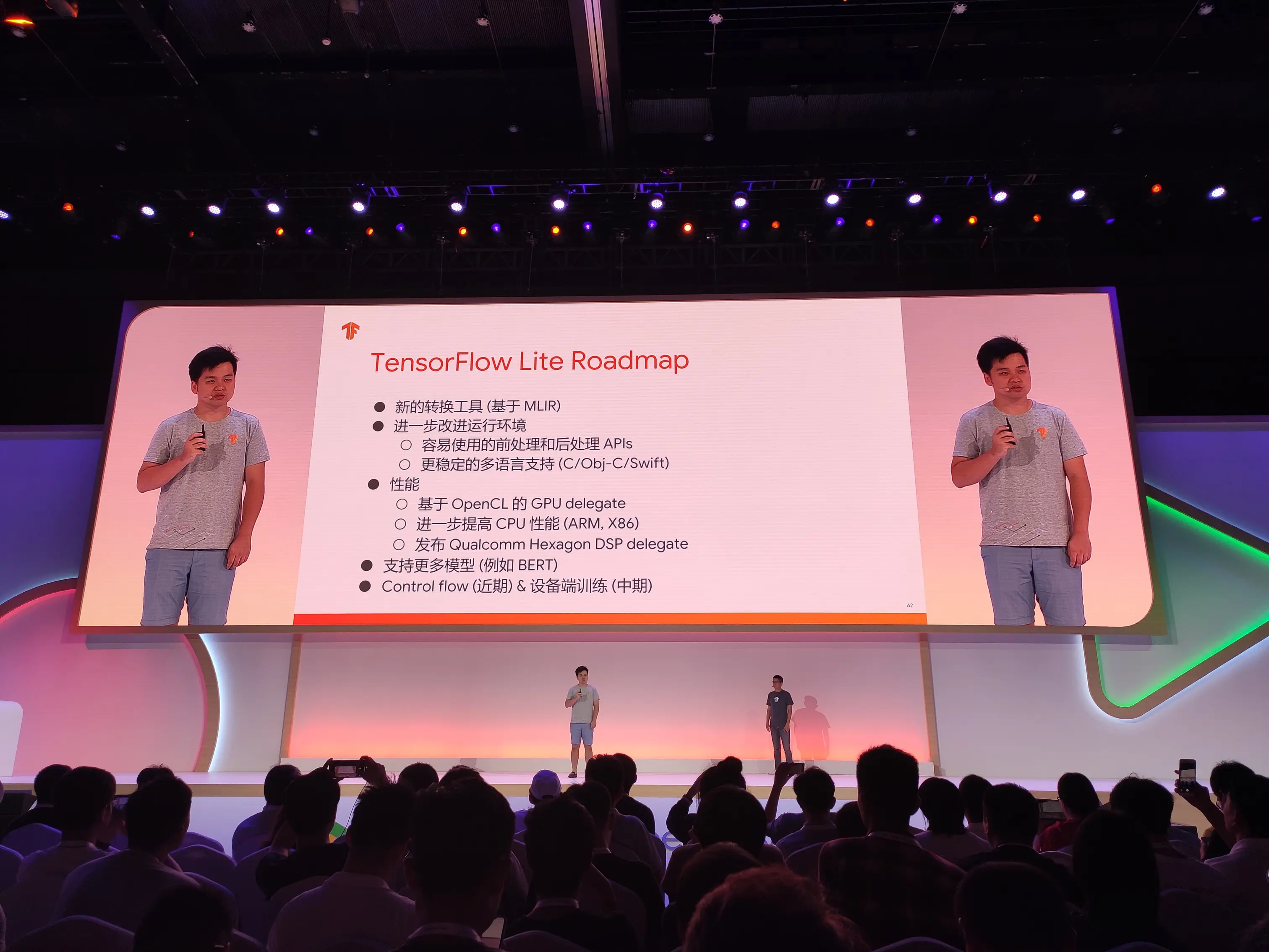 两位谷歌资深软件工程师王铁震与刘仁杰,介绍了 TensorFlow Lite 的功能更新以及技术细节。