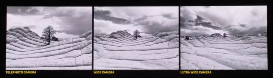 分别由长焦镜头、广角镜头和超广角镜头拍摄的风景