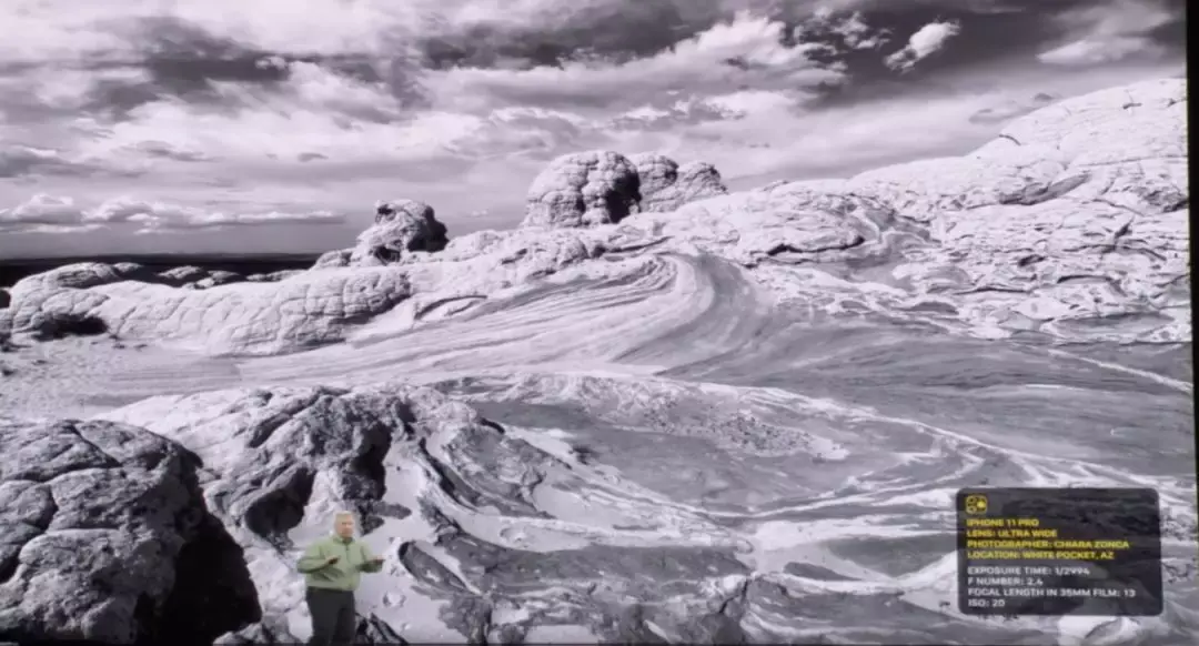 苹果还加入了新的沉浸式拍照用户界面,可展示画框之外的超广角视角。