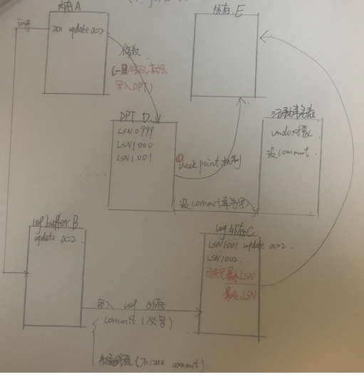 * DPT中LSN 小于等于 log外存的末尾LSN,符合条件的写入外存E