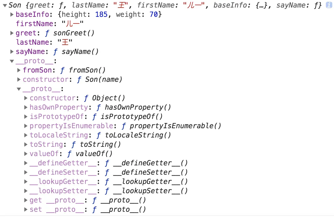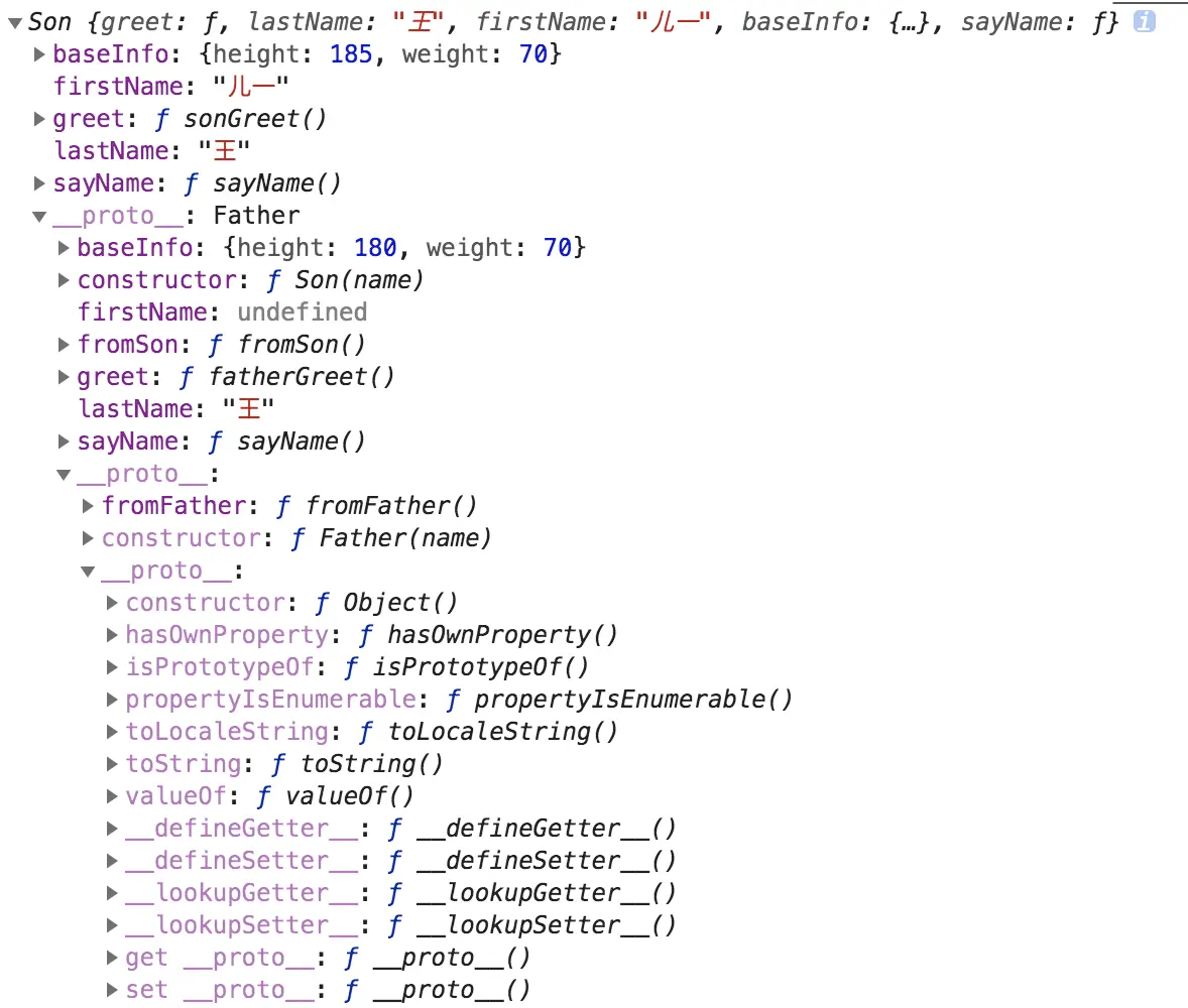 console.log(son1.baseInfo, son2.baseInfo);//{height: 180, weight: 70} {height: 180, weight: 70}