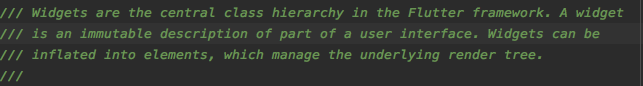 “A widget is an immutable description of part of a user interface”。Widget只是用户界面一部分不可变的描述——至于为什么不可变以及都不可变了还怎么刷新UI,这两个问题接下来我会用一片博客详细介绍一下Flutter的渲染机制。