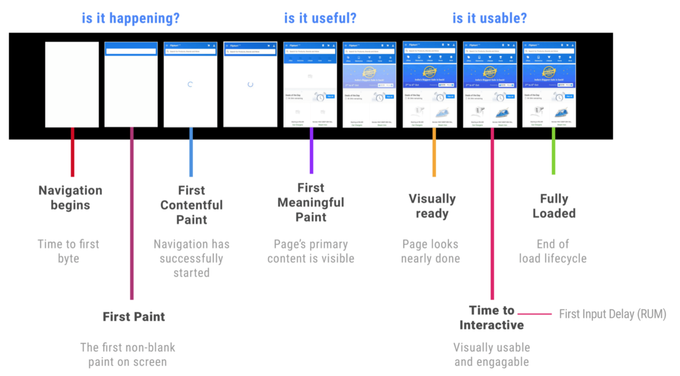 同样,传统的性能指标(如onLoad或DOMContentLoaded时间)非常不可靠,因为它们发生时可能会或可能不会对应于用户认为应用程序加载的时间。