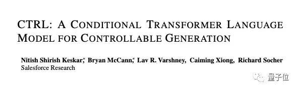 这个模型,有一个非常有“灵性”的名字:CTRL,全称为Conditional Transformer Language,基于条件的Transformer语言模型。