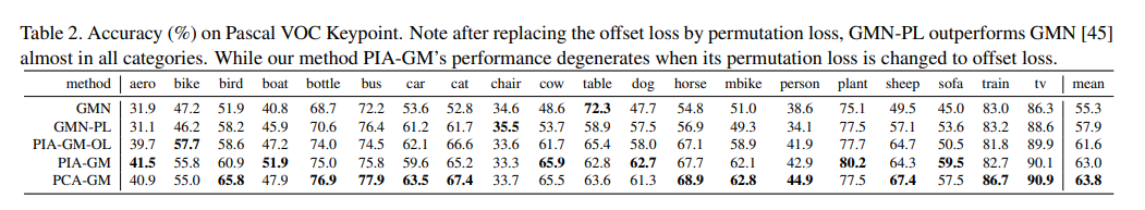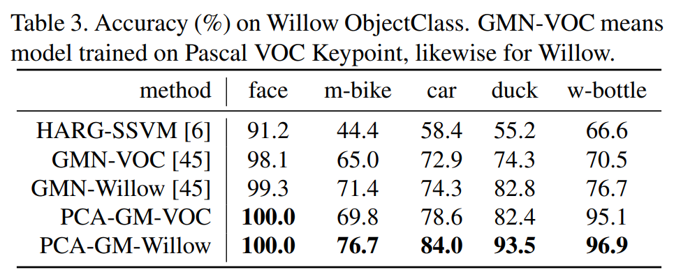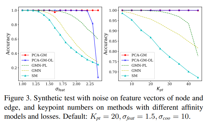 在包括了真实图片匹配以及仿真数据集上,作者提出的PCA-GM与PIA-GM均取得了最高的匹配精度,超越了基于传统机器学习的方法以及CVPR2018 Deep Learning of Graph Matching中提出的模型GMN。