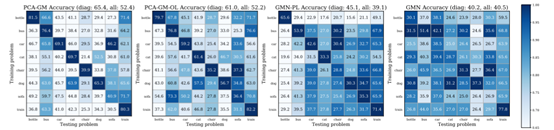 作者还通过混淆矩阵(Confusion matrix)的实验,说明了模型在不同类别的物体之间具有泛化能力。实验结果表明,PCA-GM模型学习得到的图结构在相似的类别(例如猫和狗)之间具有很好的泛化性,这说明模型学习到了图结构的相似度,展现了嵌入模型在图相关问题上的巨大潜能。