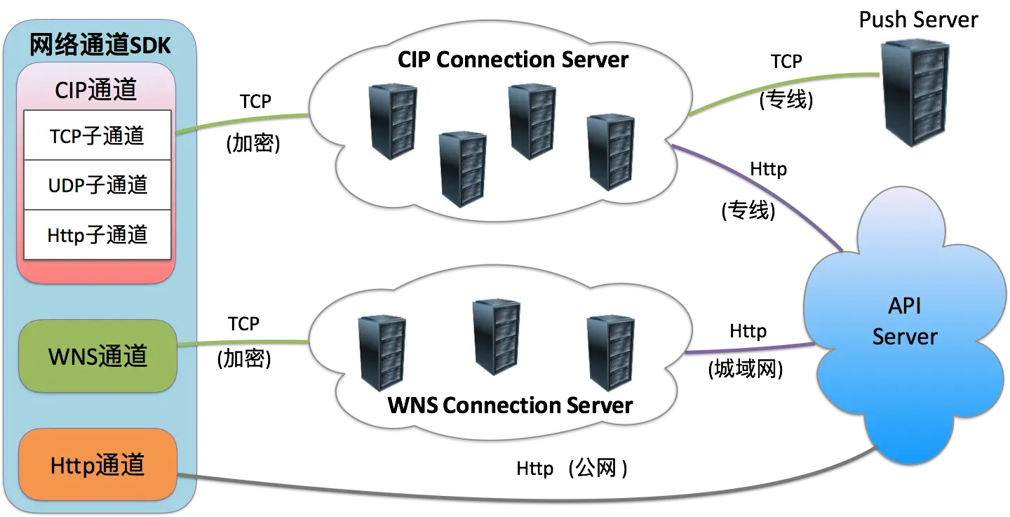 文章里有这么一段: “当TCP通道无法建立或者发生故障时,可以使用UDP面向无连接的特性提供另一条请求通道,或者绕过代理长连服务器之间向业务服务器发起HTTP公网请求”;