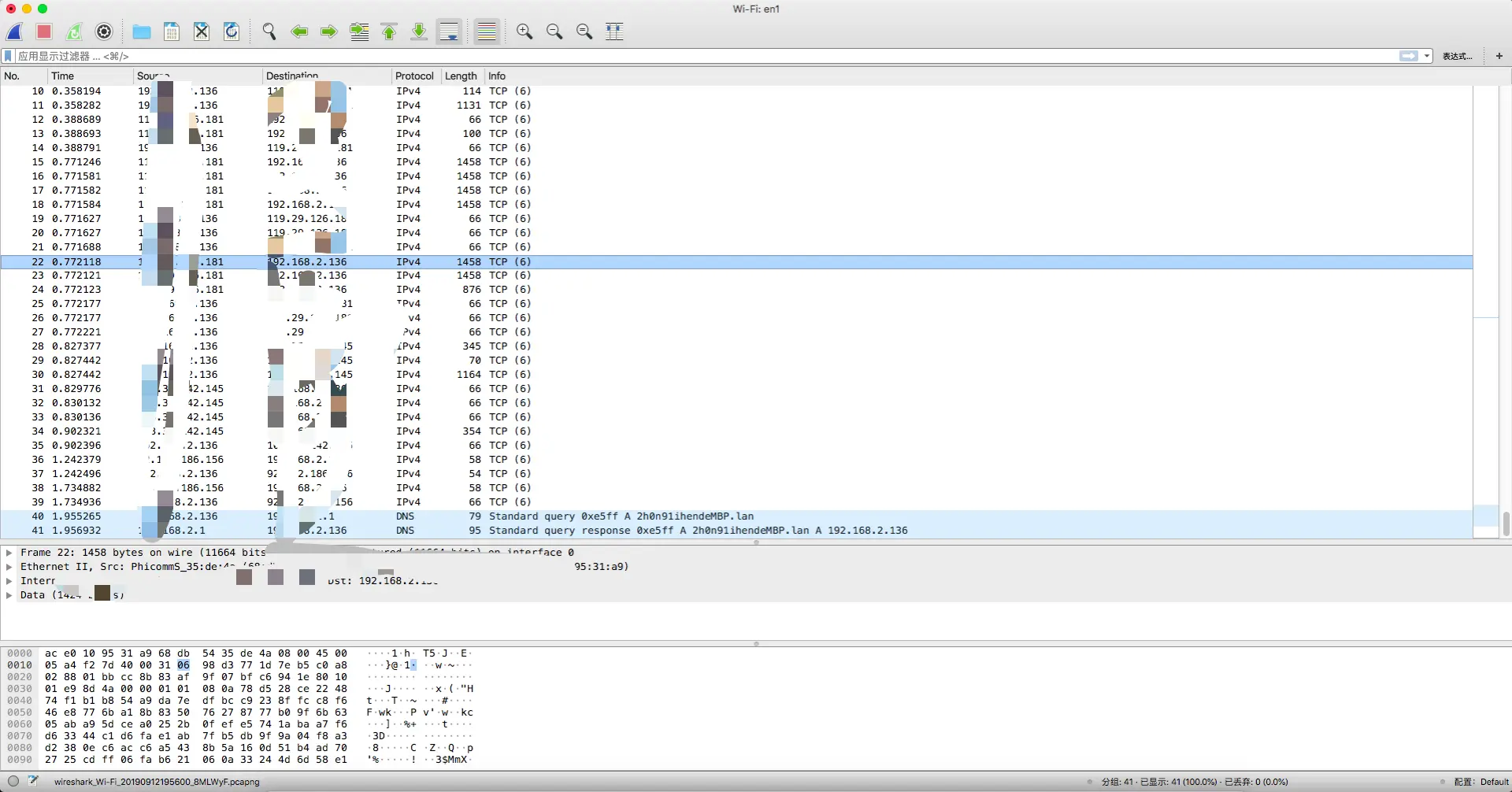 接下来我要说的是 Android 上,我抓mt是为了写爬虫,我在电脑上抓到了请求的连接但那些参数加密我需要hook,所以不得不在手机上弄,所以我就需要在手机上屏蔽ip。我先说在手机上抓长连接ip,目前手机上能抓tcp的除了tcpdump以外好像就只有 httpcanary 了,主要是它能显示请求的协议;