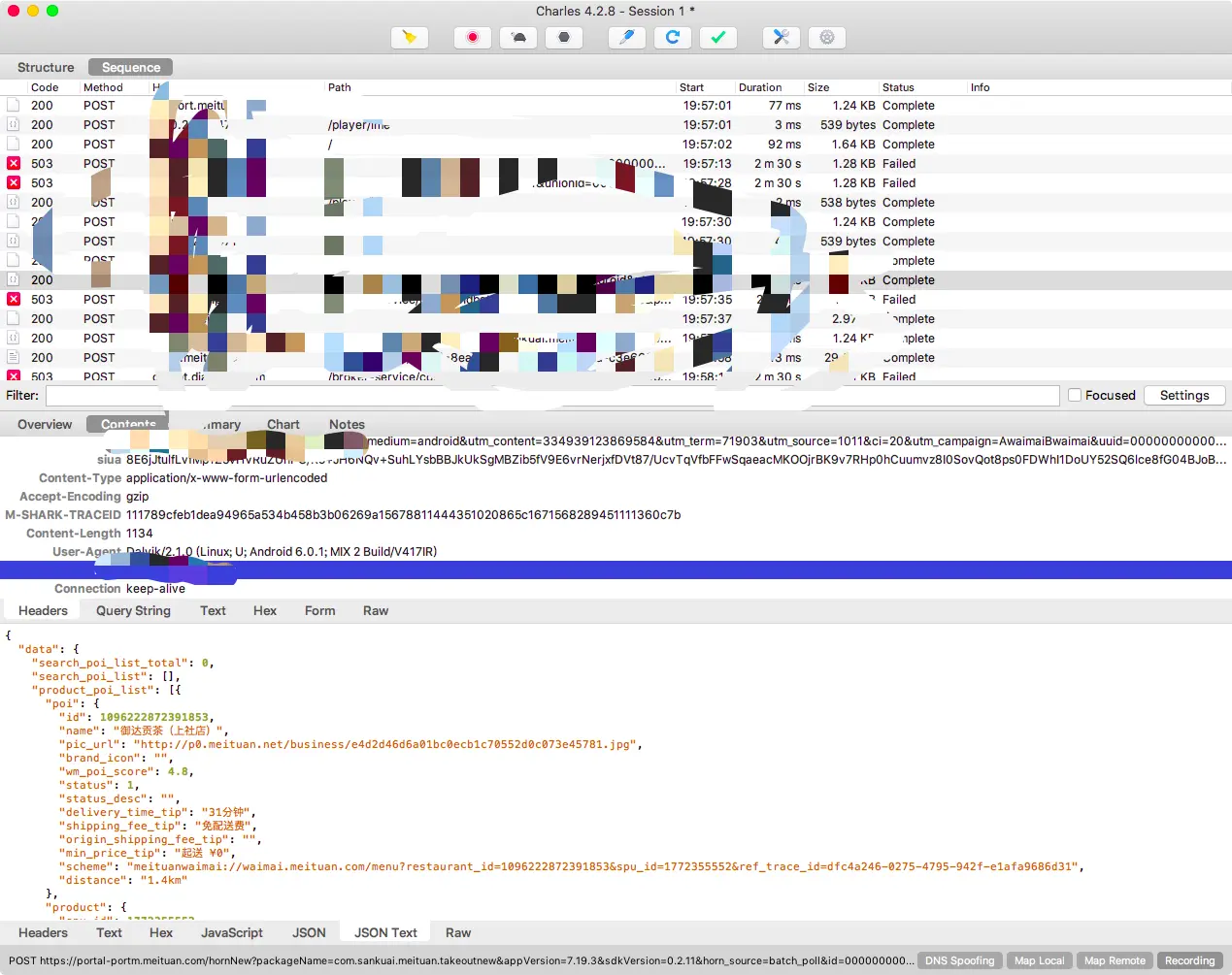 一开始爬 mtwm 我是直接Charles上手就干的,但我抓了一天都没抓到有用的数据我就开始找资料,遗憾的是网上没有一篇关于 mtwm APP 抓包分析的文章,我是真的一篇都没看到(这里指的是移动app,不是网页)