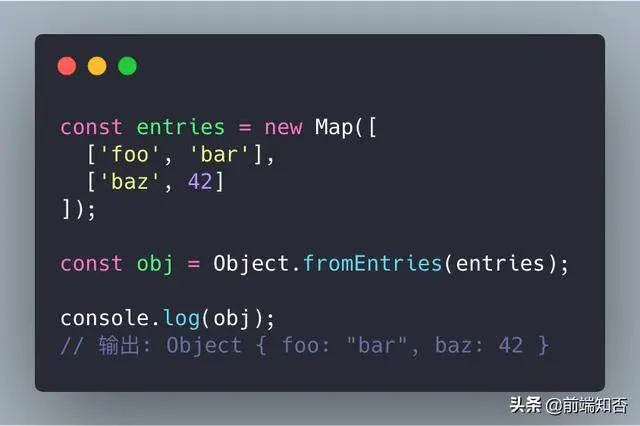 6. Object.fromEntries()。方法将键值对列表转换为对象。我们来看一个例子吧