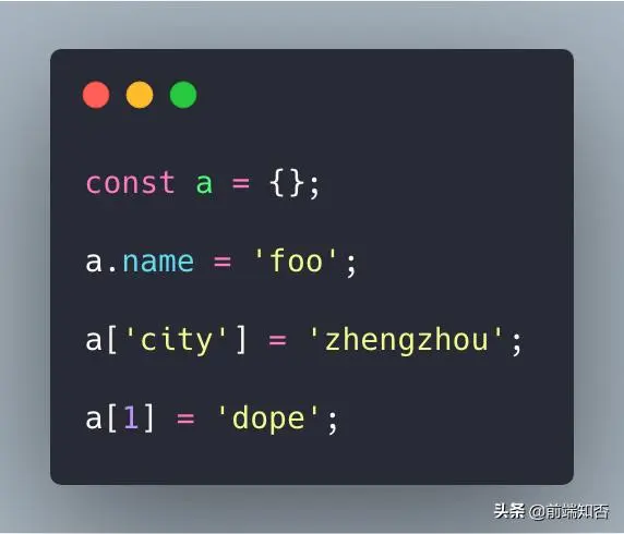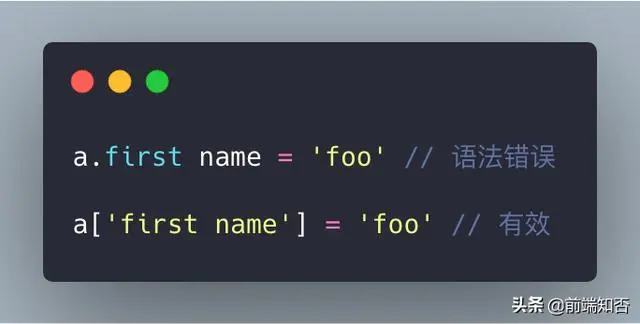 属性名称可以是字符串,数字或特殊字符,也可以是动态属性,但如果属性名称不是字符串,则必须使用括号表示法访问它。因此,如果我们需要访问上面示例中的属性1,我们可以执行a[1],但是a.1将返回语法错误。而a.name或[“name”]则都可以。