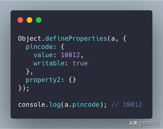 我们还可以通过Object函数方法( 如Object.defineProperties() 或 Object.defineProperty() )创建和更新对象的属性。