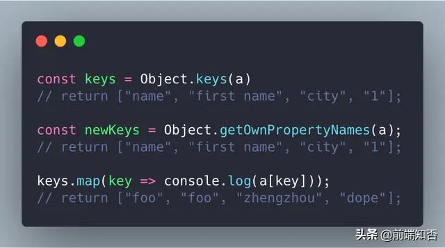 1. Object.keys() 或 Object.getOwnPropertyNames()。 返回字符串键数组。
