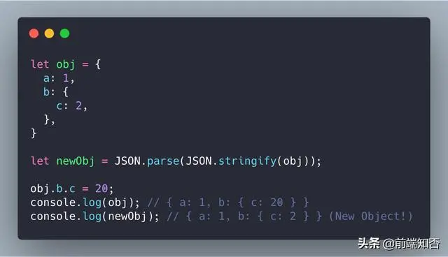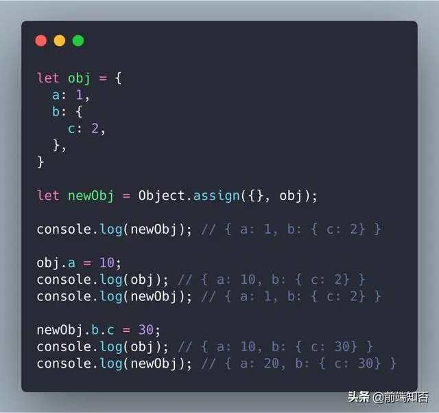 正如我们在上面看到的 obj.b.c = 30,这是 Object.assign() 的一个陷阱。 Object.assign 只生成浅拷贝。 newObj.b 和 obj.b共享对象的相同引用,没有制作单独的副本,而是复制了对象的引用。