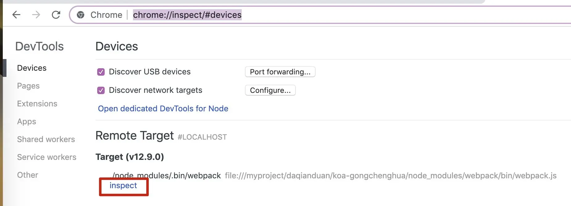 chrome://inspect/#devices