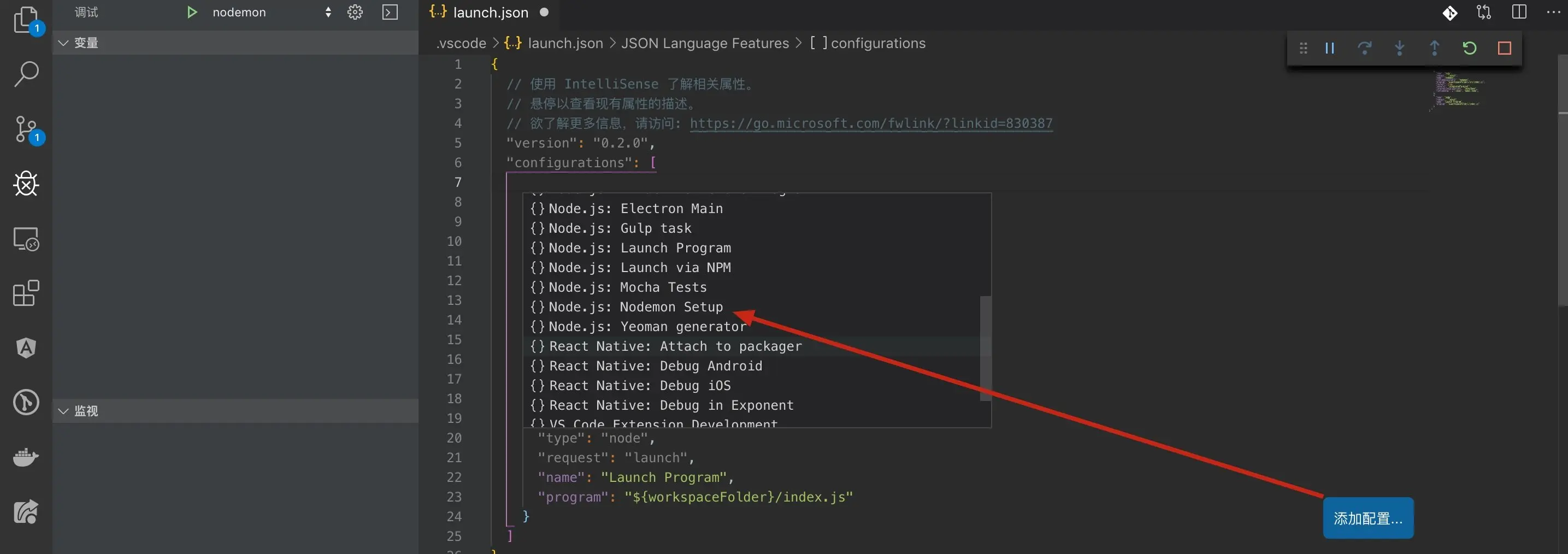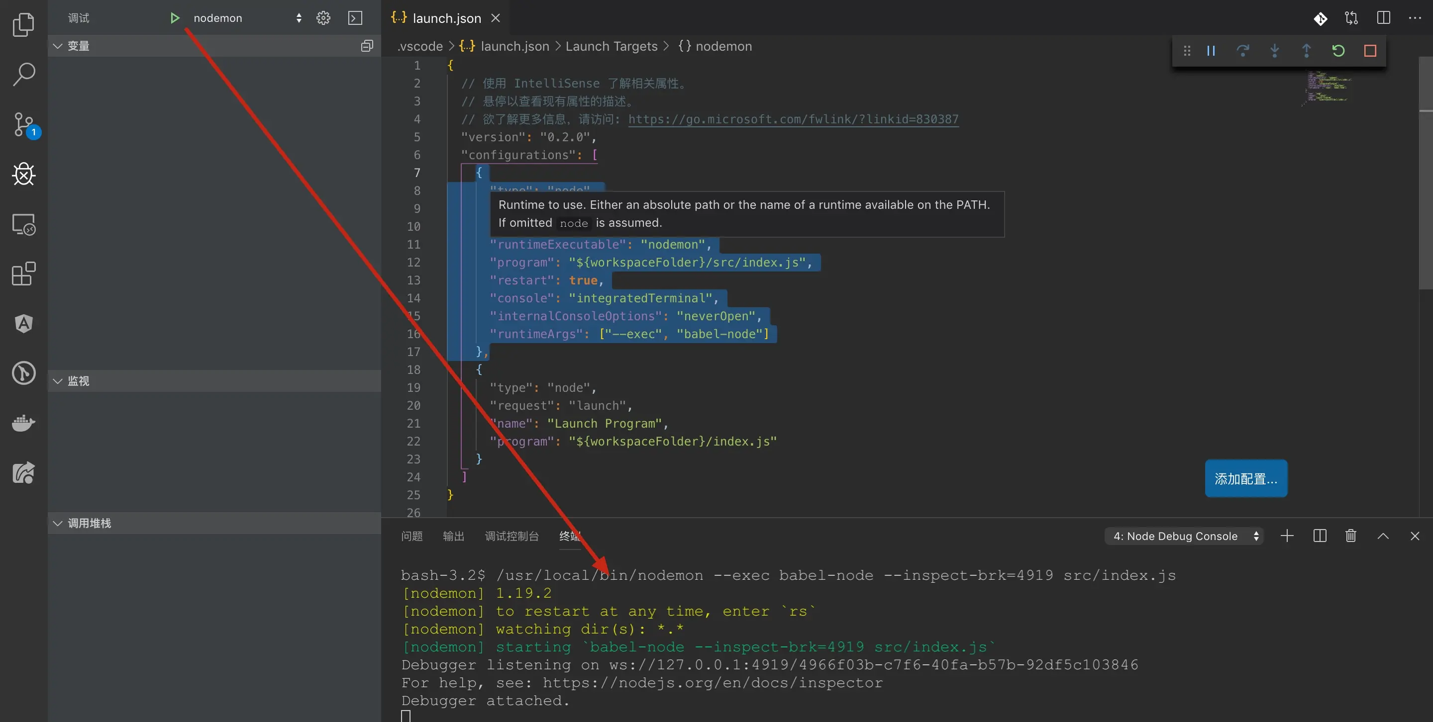 "runtimeExecutable": nodemon的位置,全局安装直接写nodemon就可以了。