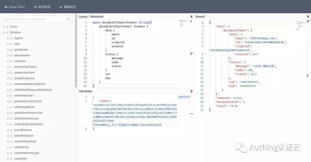我们开源了一款基于 Vue.js 的 GraphQL 调试器,暂命名为 Super Graphiql 。它可以帮助体验与调试线上的 API,支持自动生成查询语句,并集成了文档功能。欢迎关注与提交 issue 哦。Github 地址: https://github.com/Authing/super-graphiql