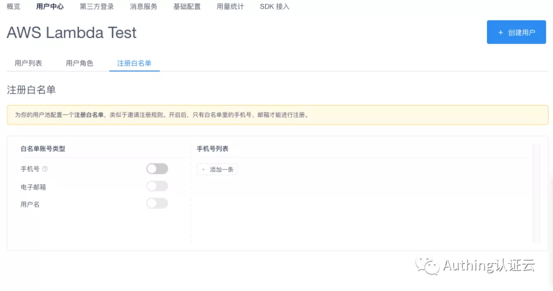 用户中心添加注册白名单功能