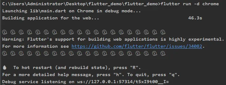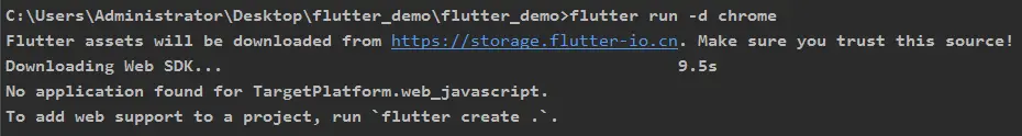 我新建了一个项目flutter_demo,然后我运行flutter run -d chrome,然而没反应。