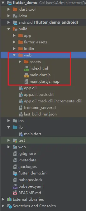 编译生成的web需要的文件在项目的根路径的build/web里面,如下图红色框框所示: