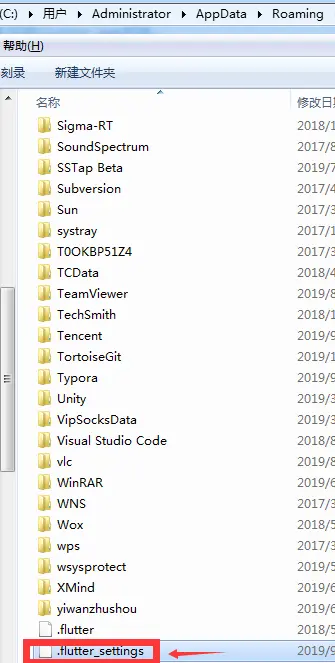 然后会在电脑的 C:\Users\Administrator\AppData\Roaming 路径生成 flutter_settings 文件(Administrator是你的电脑名称),你可以用文本编辑器打开,内容是这样的: