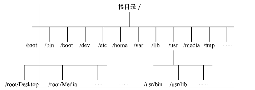 Linux 中一切都是文件,一切文件都是从“根(/)”目录开始的,并按照文件系统层次化标准(FHS)采用树形结构来存放文件。另外,在 Linux 系统中的文件和目录名称是严格区分大小写的并且文件名称中不得包含斜杠(/)。下图为文件存储结构示意图: