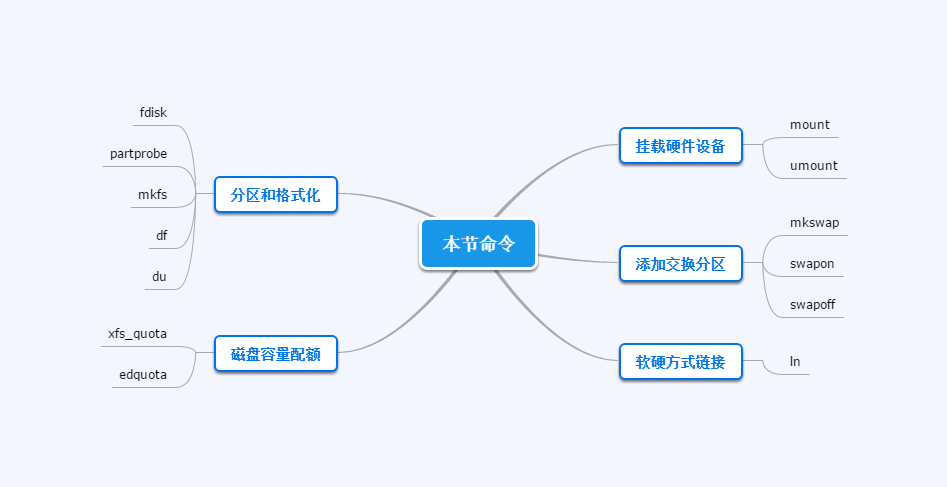 当用户需要使用硬盘设备或分区中的数据时,需要先将其与一个已存在的目录文件进行关联,而这个关联动作就是挂载。下面两个命令与挂载有关: