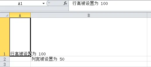 sheet['A1']='行高被设置为 100'
