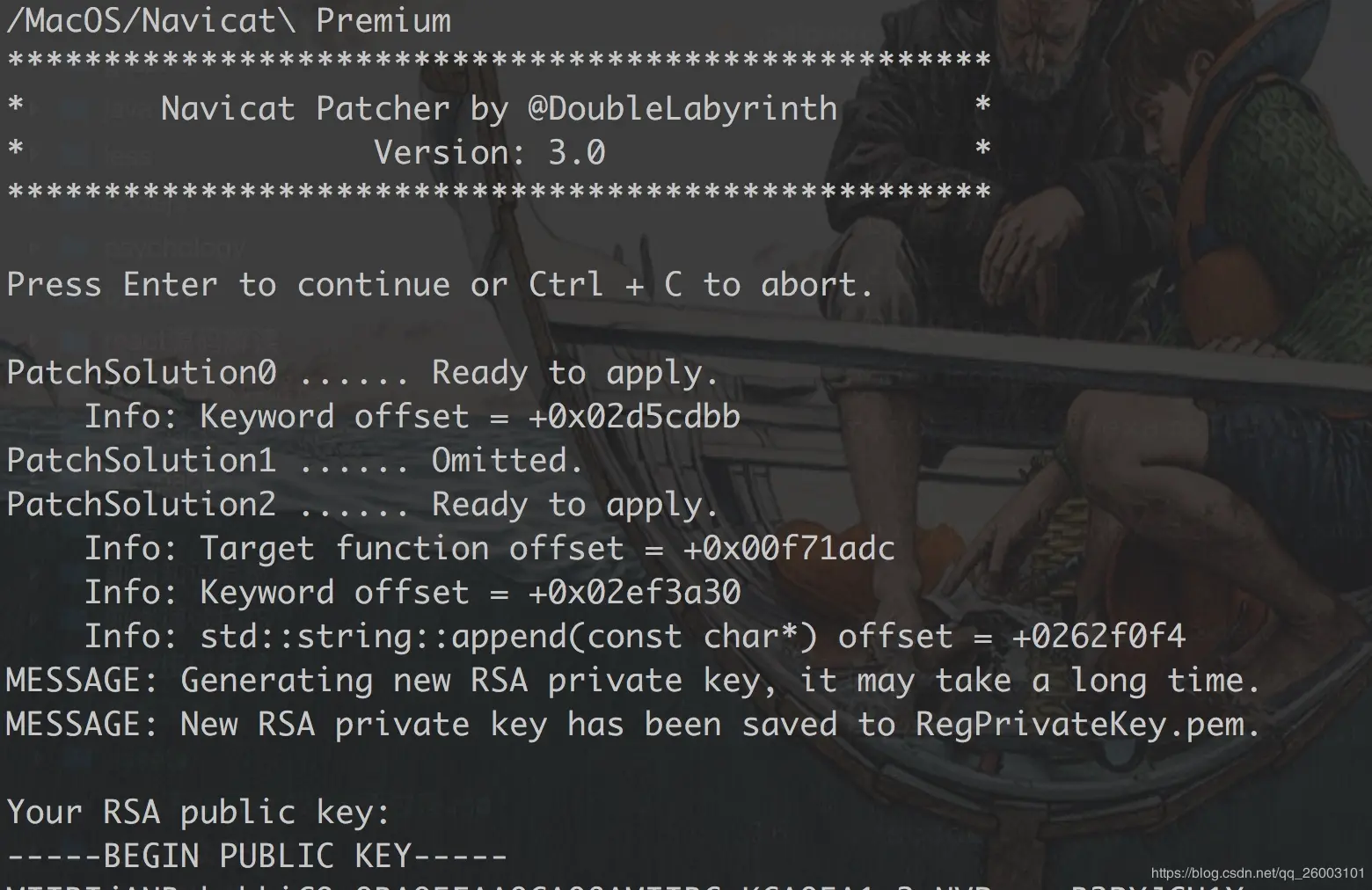 navicat-patcher将会在当前目录下生成一个新的RSA-2048私钥文件RegPrivateKey.pem。