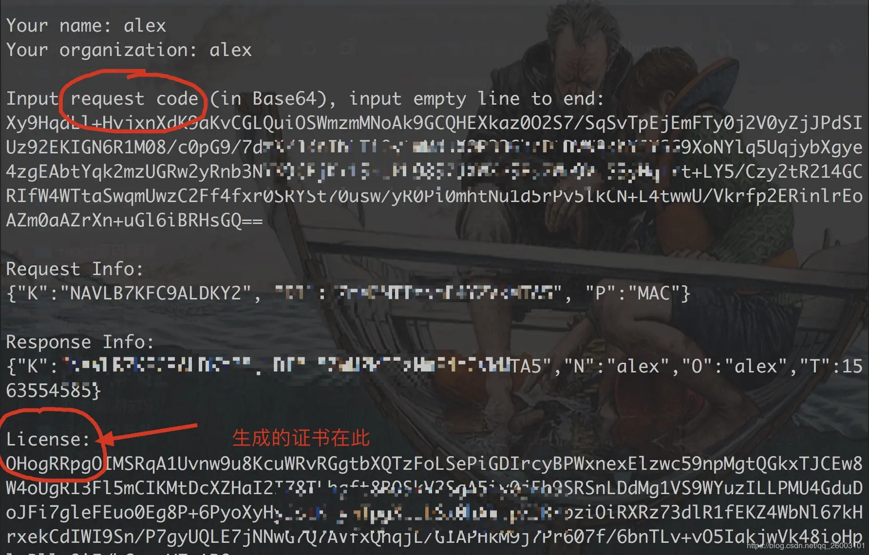 之后你会被要求填入请求码。注意 不要关闭注册机.