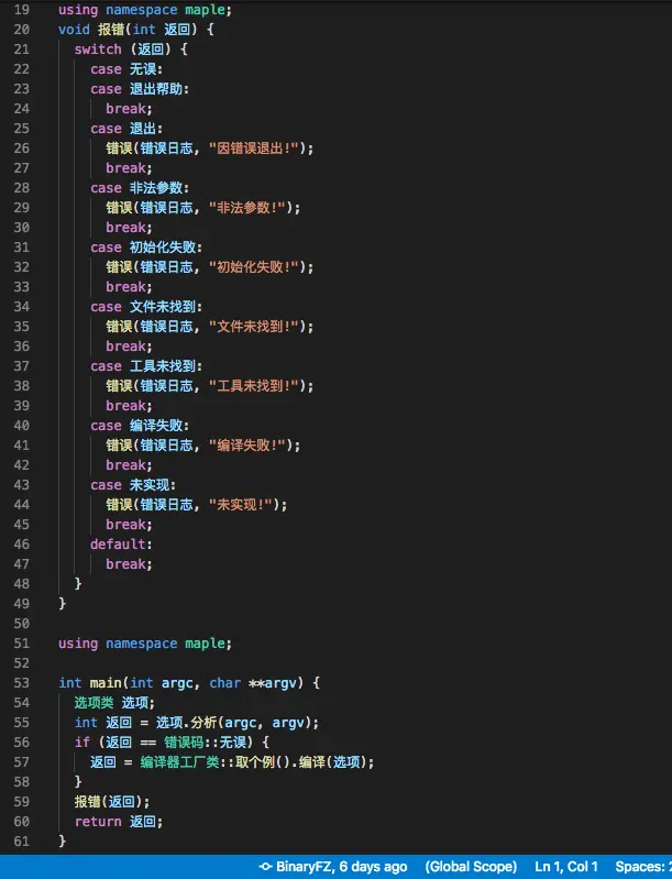maple.cpp入口代码开始中文化(与前作手工翻译Vue.js源码:尝试重命名标识符与文本类似), 作为初步的可行性实验.