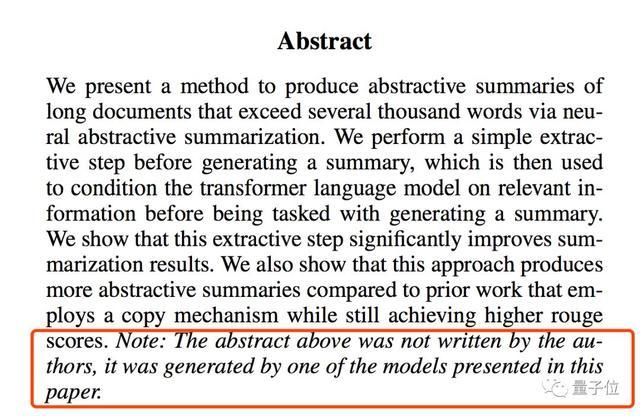 细心了网友看到论文摘要结尾,才发现一个斜体备注中写着:上面的摘要不是作者写的,而是由研究中展示的一个模型自动生成的。