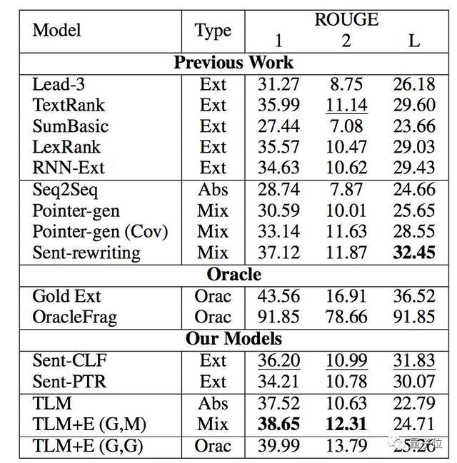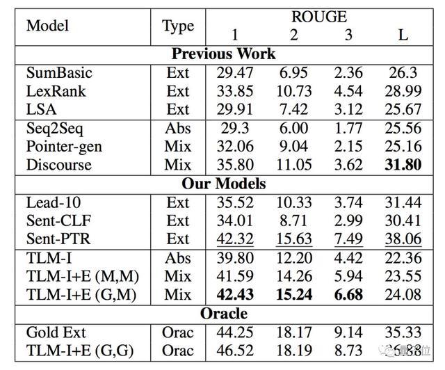 新方法TLM均优于此前摘要提取的baseline,并超越了先前提取结果。