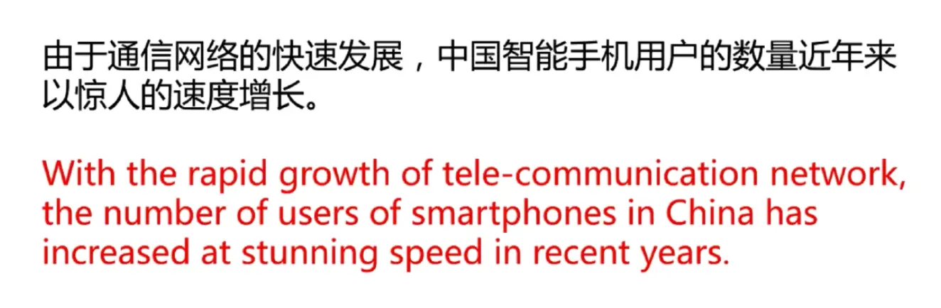 由于+快速发展的+通讯网络),数量(用户+智能手机+中国)增长(以惊人的速度+近年来)