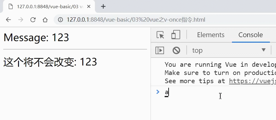 <span v-once>这个将不会改变: {{ msg }}</span>