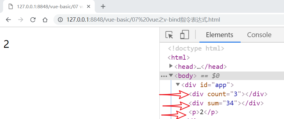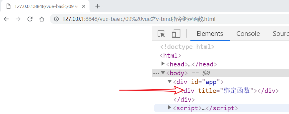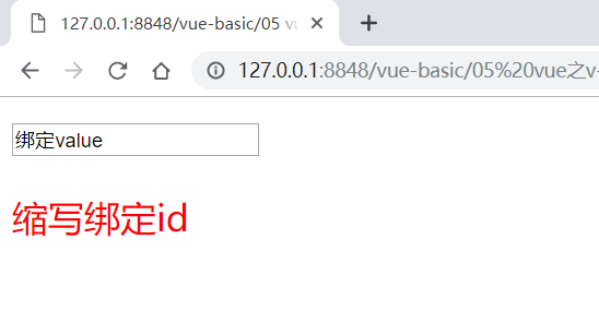 除了文本插值,我们还可以像这样来绑定元素特性: