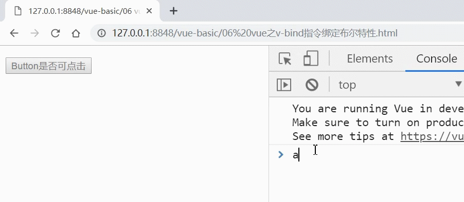 <button v-bind:disabled="isButtonDisabled">Button是否可点击</button>