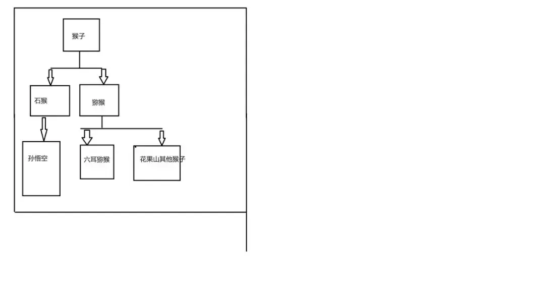 很显然,地府管理一切生灵的生死的方法都是通过类来进行区分的,比如孙悟空就是石猴,之后出现的那个六耳猕猴就是猕猴,但是他们都是属于同一个类,猴类,就像下图中。