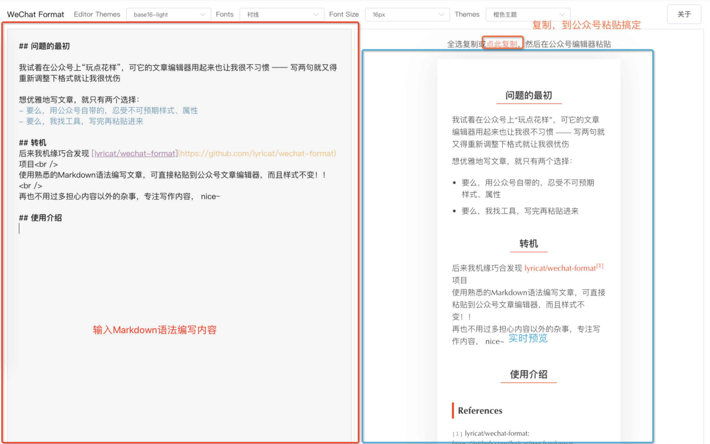 使用熟悉的Markdown语法编写文章,可直接粘贴到公众号文章编辑器,而且样式不变!!