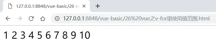 <span v-for="n in 10">{{ n }} </span>