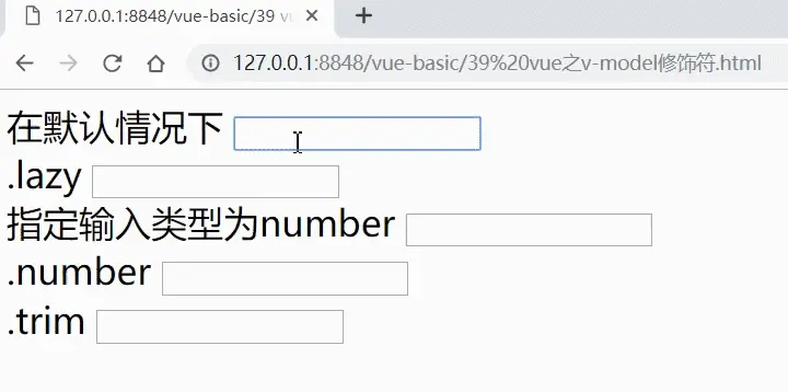 <!-- 在默认情况下,v-model 在每次 input 事件触发后将输入框的值与数据进行同步 (除了上述输入法组合文字时)。你可以添加 lazy 修饰符,从而转变为使用 change 事件进行同步: -->
