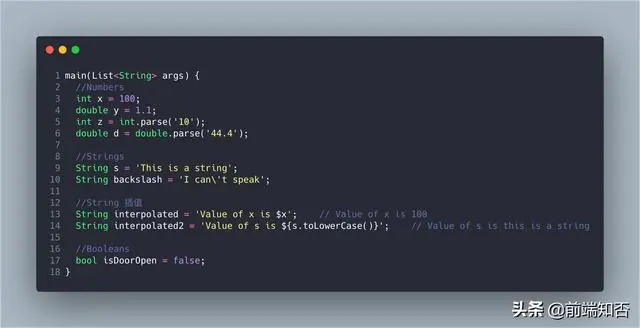与Java类似,每个Dart程序都必须有一个main作为其入口点。