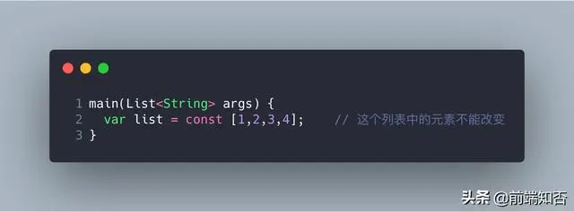 如果要定义一个编译时常量的List,即列表内容不可更改,则使用const关键字。