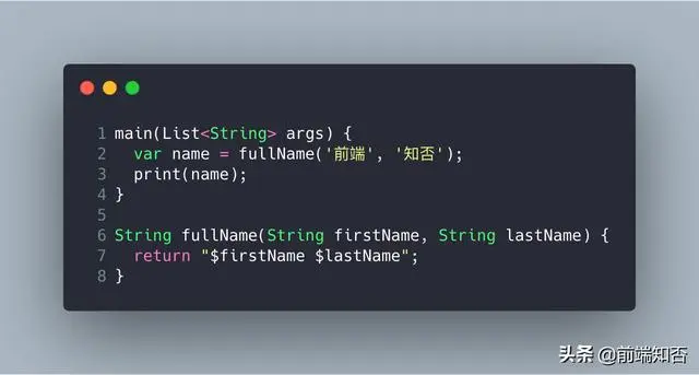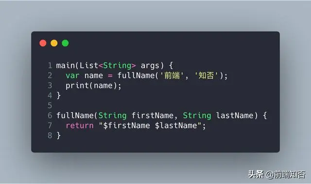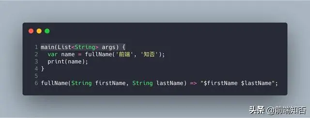 Dart中的函数尽可能简单,有点类似于javascript。您需要做的就是提供名称,返回类型和参数。