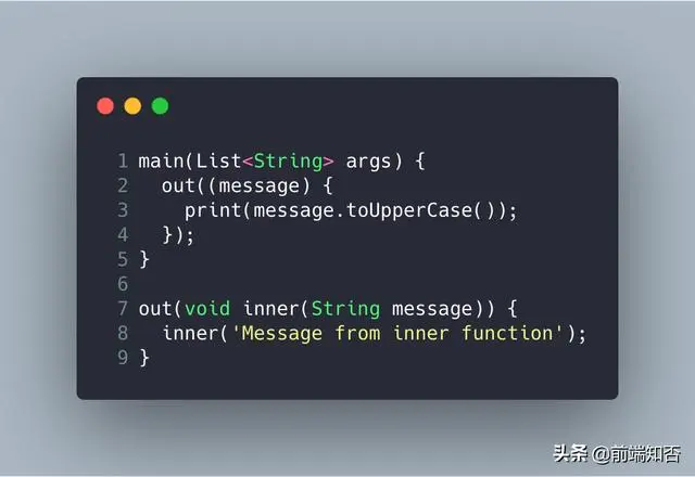 在Dart中,函数非常灵活,例如,你可以在另一个函数中传递一个函数。对于这一点,JavaScript开发者应该很熟悉了。