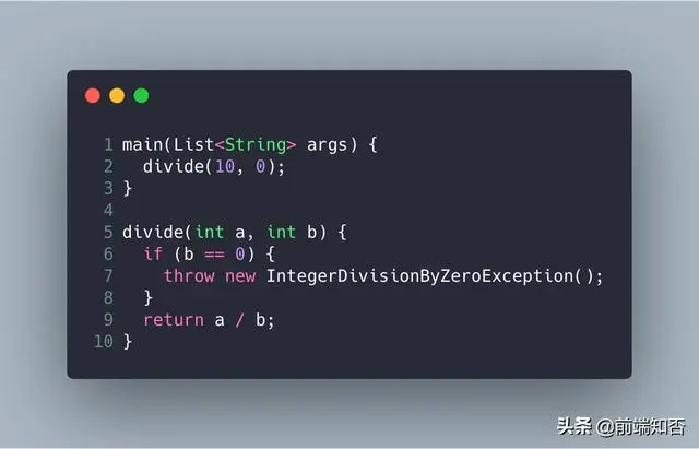 当整数b的值为0时,我们抛出一个名为IntegerDivisionByZeroException的内置异常。