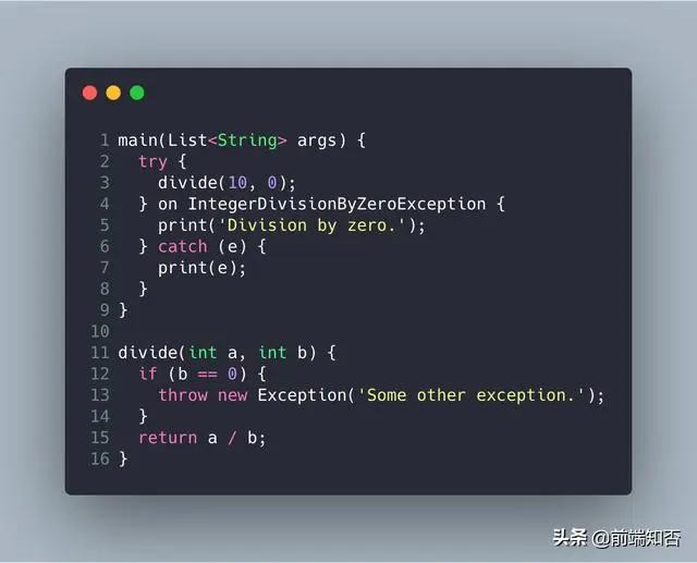 Dart使用典型的try-catch块来处理异常,并使用throw关键字来引发异常。