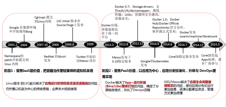 - 在2015年6月,由Docker以及其他容器领域的领导者共同建立了围绕容器格式和运行时的开放的工业化标准,即Open Container Initiative(OCI),OCI具体包含两个标准:运行时标准(runtime-spec)和容器镜像标准(image-spec)。