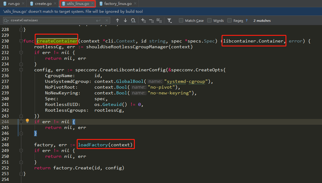 /* libcontainer/factory_linux.go */