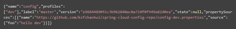 5.1请求http://localhost:8888/config/dev/master,结果如下: